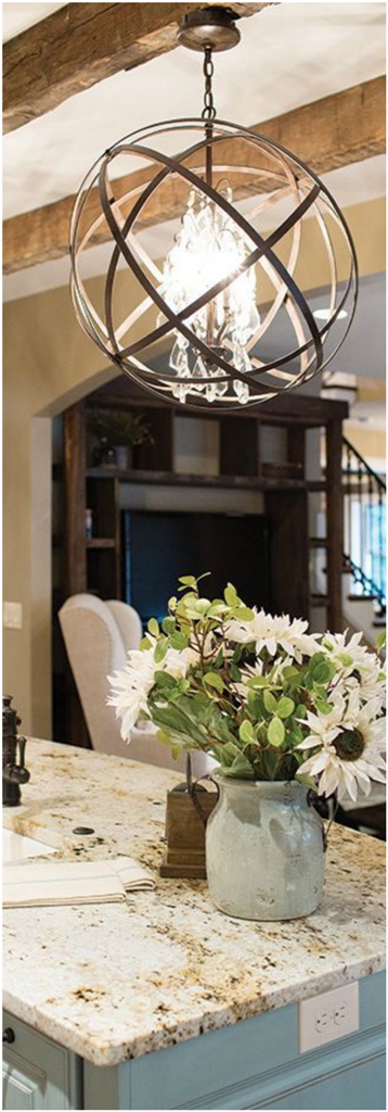 Even if you don't have the budget for?a series of pendants over the center island, at least install the three junction boxes.