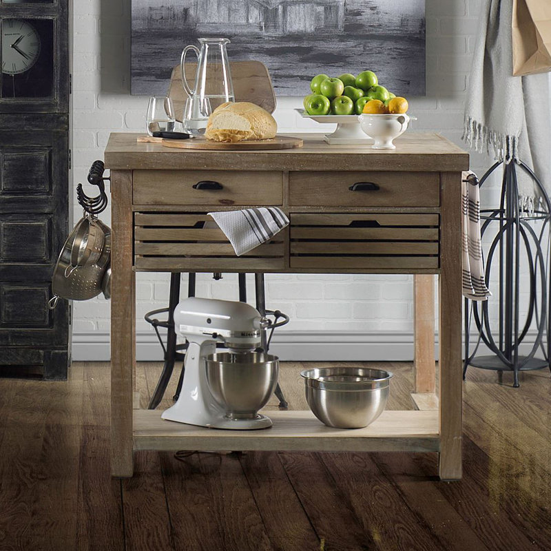 Jordao kitchen island set use this multifunctional piece as a kitchen island for cooking or additional seating. Mckinnis kitchen island solid wood kitchen cart rustic kitchen. Convenient drawer pulls with a stainless steel handle to provide an enclosed space to keep your. It is a conceptual bond that elevates the aesthetic value of the interior and provides complementary counter space.